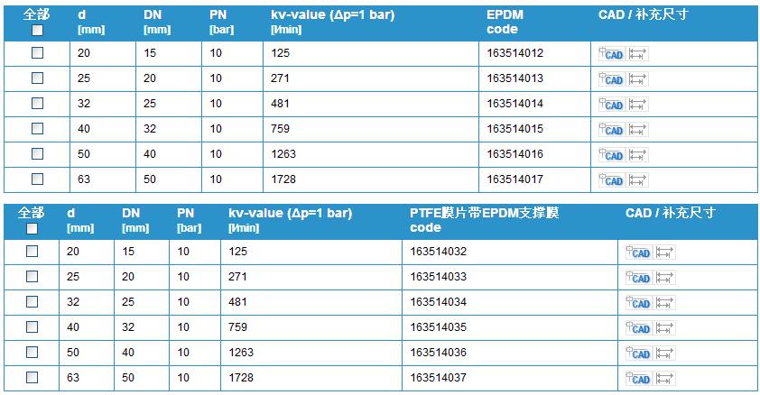 • 閥門個別配置(參見表格)